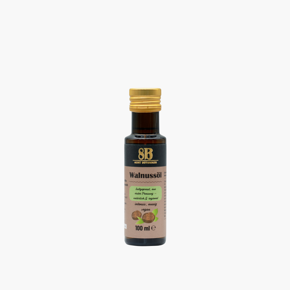 Schnapp dir dein Acht Botaniker Lieblingsgewürz und verfeinere deine Salate, Dressing oder auch dein Müsli mit dem Acht Botaniker kaltgepresstes Walnussöl.