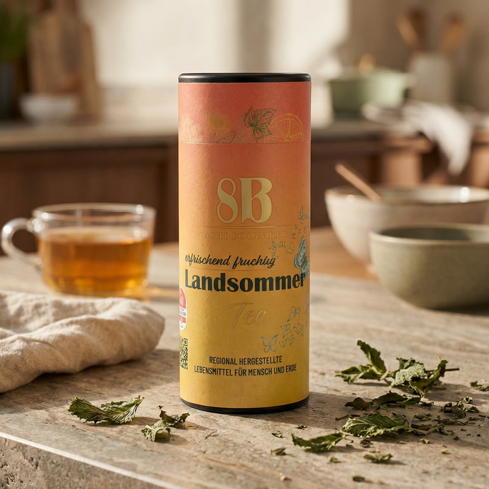 Tee ist nur für kalte Tage? Nicht unser Landsommer! Er ist der ideale Tee zum Abkühlen an heißen Tagen. Pfefferminze und Melisse liefern die nötige Erfrischung und die fruchtigen Zutaten befördern dich auf eine blühende Feldwiese an einem heißen Juli-Tag. Entspannt auf einer großen Decke liegend und in den Himmel schauend.