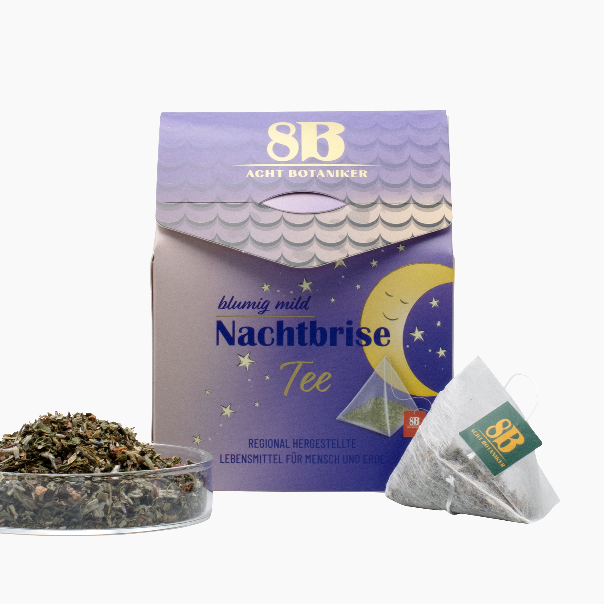 100% natürliche Teekräuter ohne Zusätze und in Pyramidenbeuteln.
