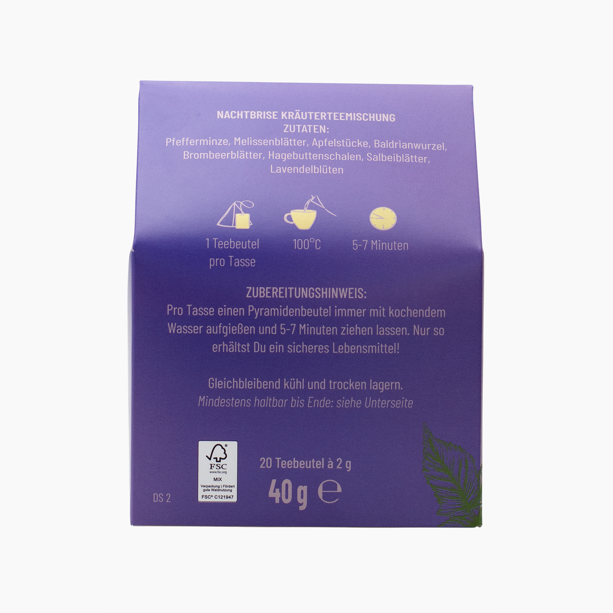 Pro Tasse einen Pyramidenbeutel immer mit sprudelnd kochendem Wasser aufgießen und 5-7 Minuten ziehen lassen. Nur so erhältst du ein sicheres Lebensmittel.