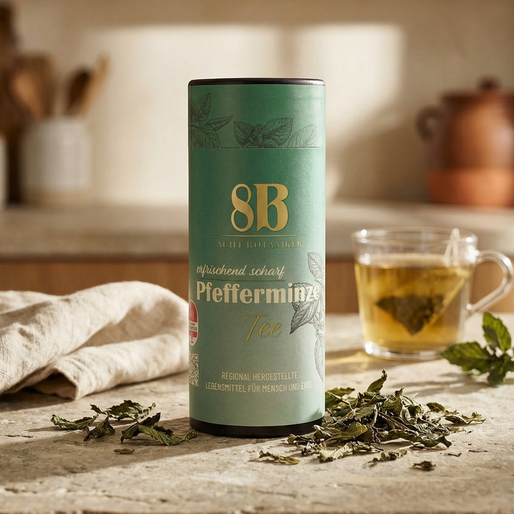 Unser Pfefferminztee überzeugt mit der vollen Kraft der Pflanze. Wie sie auf den Feldern in Südhessen geerntet wurden – für eine Qualität, die man schmeckt, riecht und auch sieht! Überzeuge dich selbst!